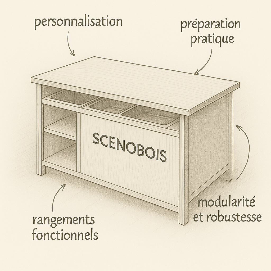 Comprendre vos contraintes, anticiper vos besoins, valoriser votre métier : c’est notre quotidien. Chez Scenobois, on ne se contente pas de fabriquer du mobilier bois. On crée, avec vous, des outils qui simplifient vos opérations et renforcent votre image.